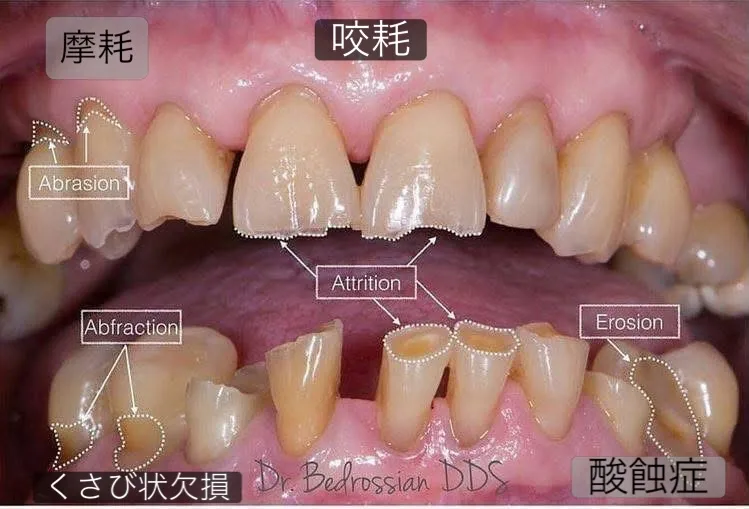 むし歯ではないですが、歯に穴があく、歯が溶ける、歯がすり減る、ことがあります。